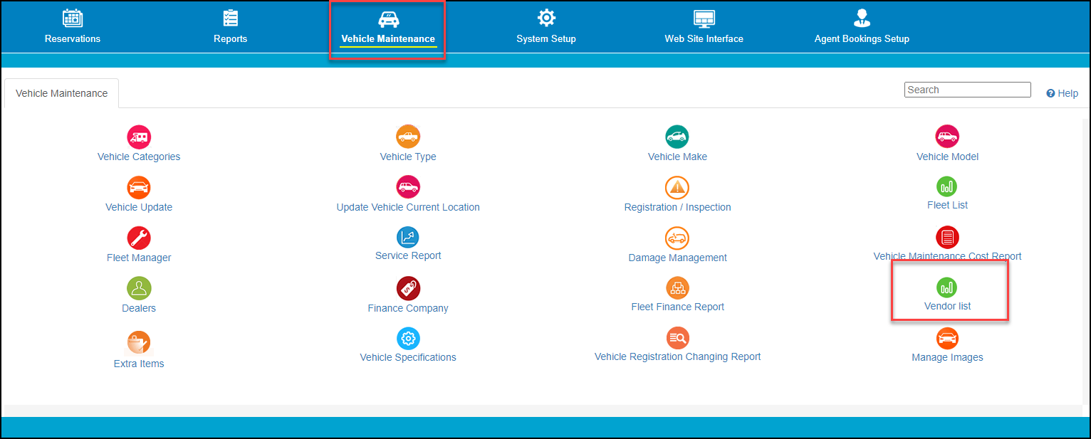 From the Vehicle Maintenance Menu, click on 'Vendor List'