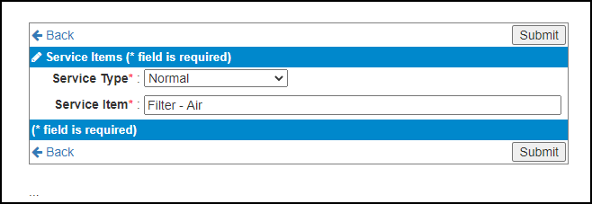 Select the Service Type that this is for and the name of the Service Item, them click on "Submit".