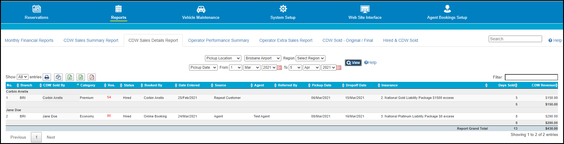 CDW Sold By | The name of the operator who sold the CDW for this booking. |