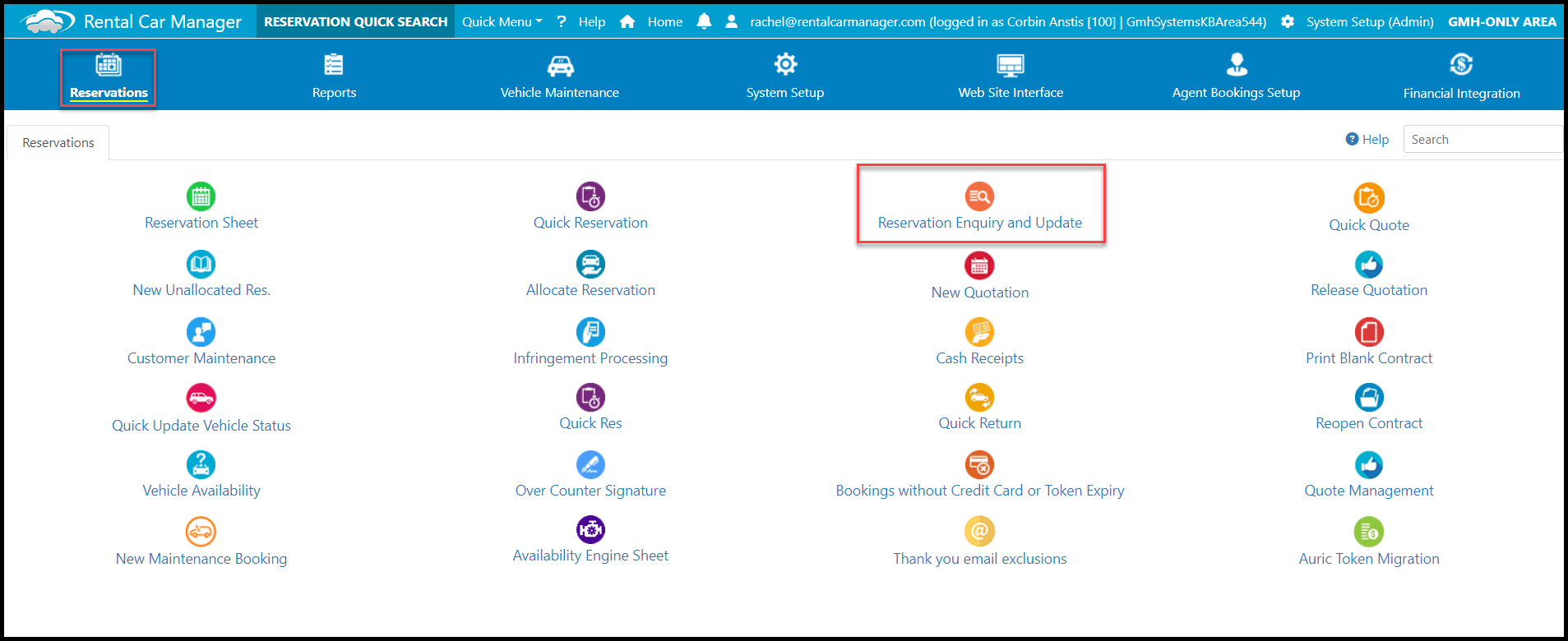 Reservations >> Reservation Enquiry and Update >> Vehicle