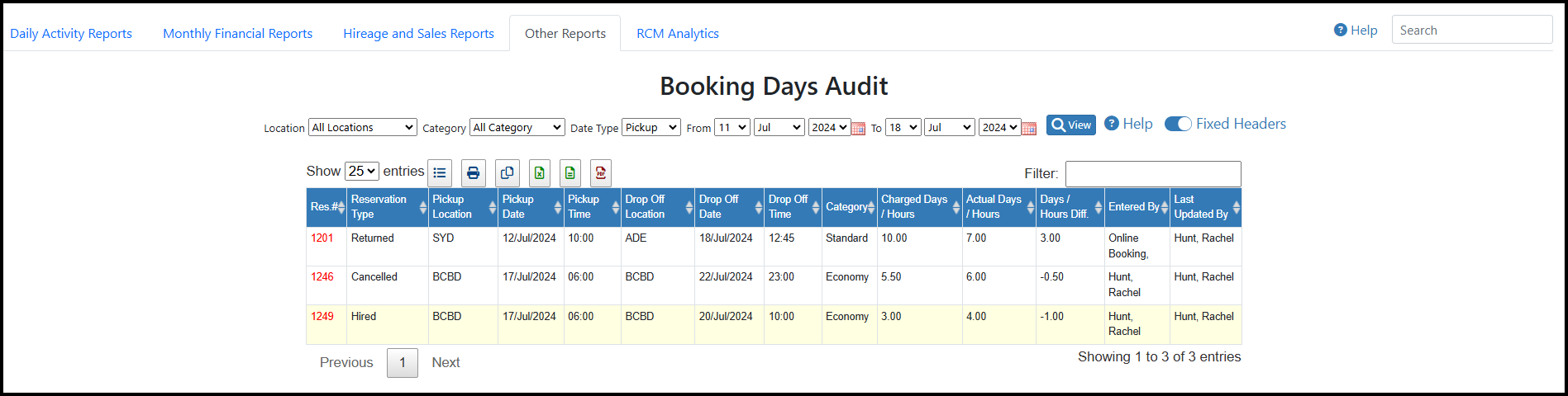 Purpose The Booking Day Audit report is designed to find bookings where the days charged is different from the actual length of the booking. This can be used to audit any discrepancies and find any mistakes that might have been made when creating a ...