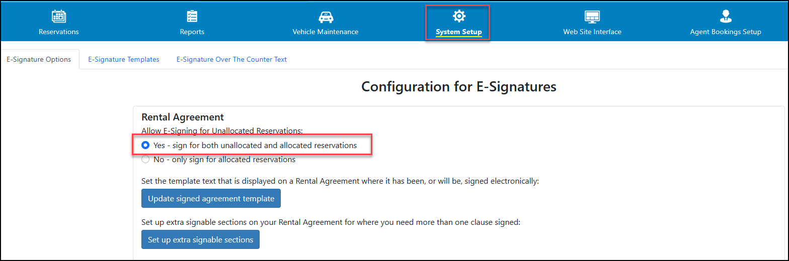 It is now possible to invite customers to electronically sign a Rental Agreement for an Unallocated Booking.