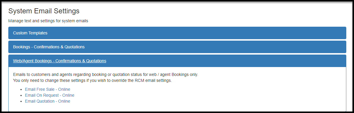 Click on the template type you wish to update. In this example, you want to select "Web/Agent Bookings - Confirmations & Quotations".
