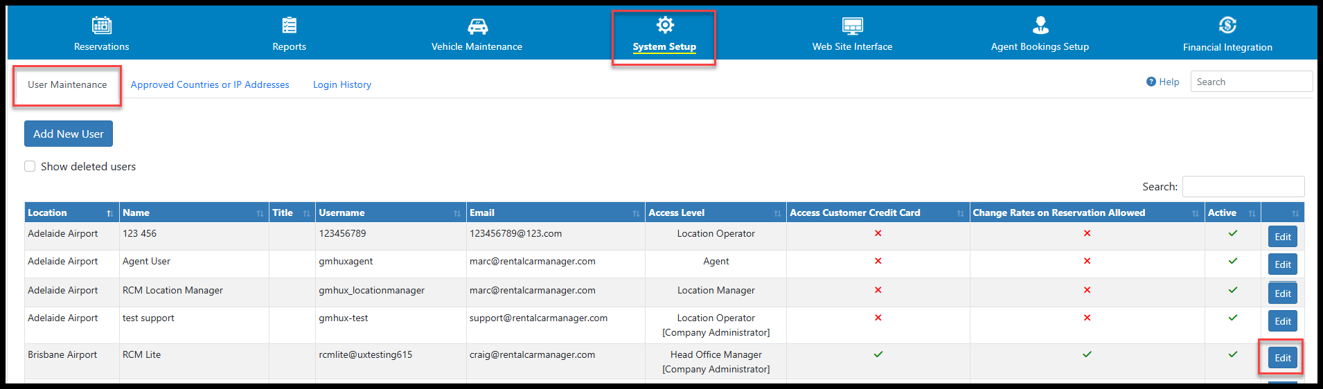 Users will only be able to delete cards from a Payment Gateway if they have permission to do so. In System Setup >> Users, company administrators are able to view and edit any existing users in your system.