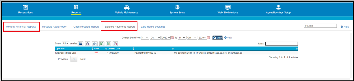 Once a payment has been updated or deleted, there will be a note added to the Reservation Log outlining the change.