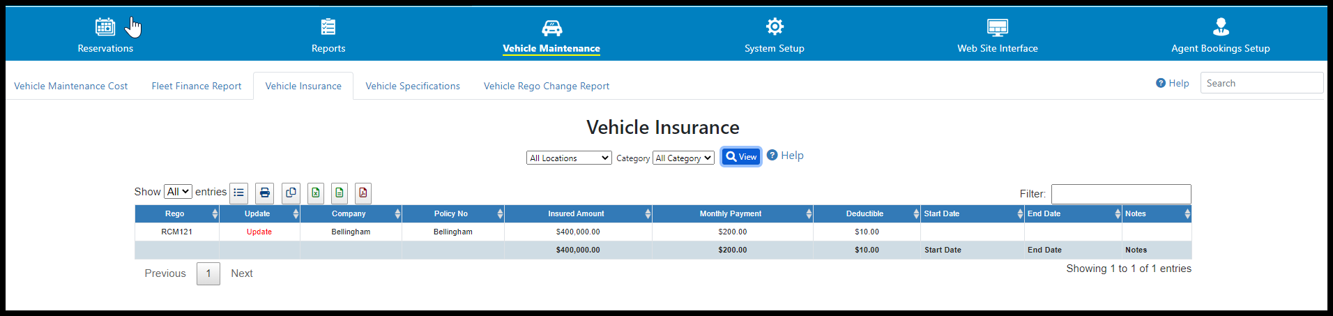 Vehicle Maintenance >> Fleet Finance Report >> Vehicle Insurance