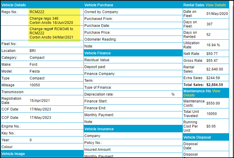 | Registration No | Yes | The vehicle's registration number. Please note: You are UNABLE to add spaces or brackets into the Registration Number field. If you do to, they will be removed from the number when the record is saved. |